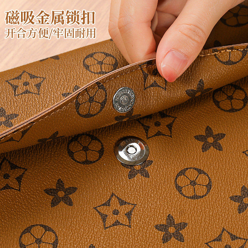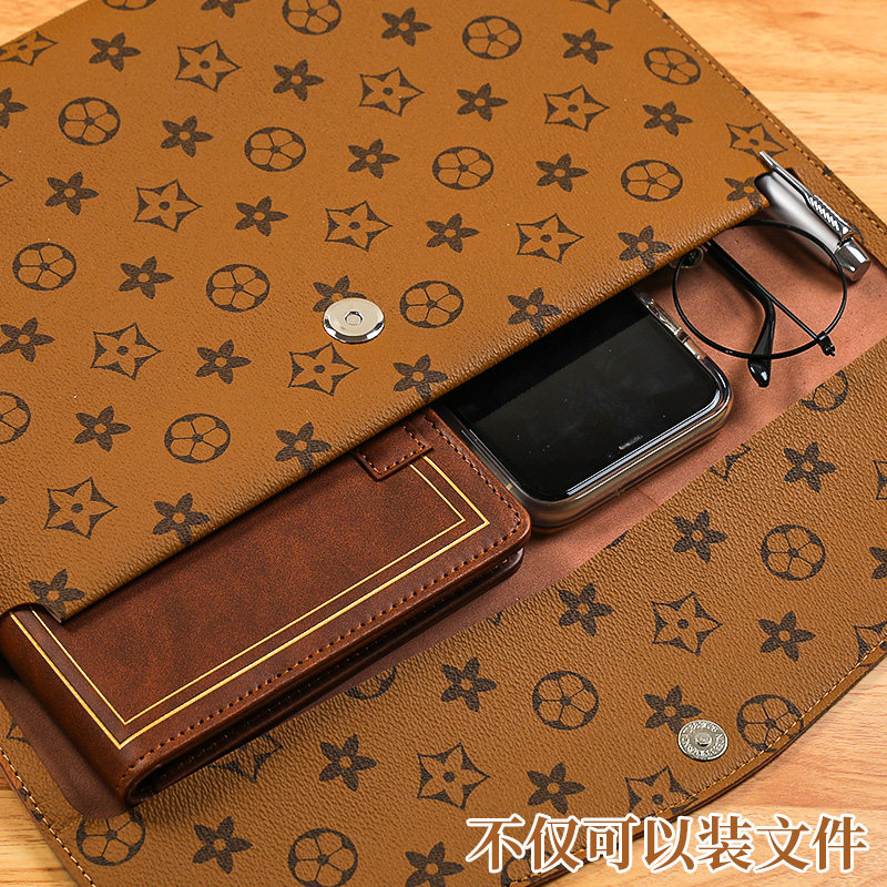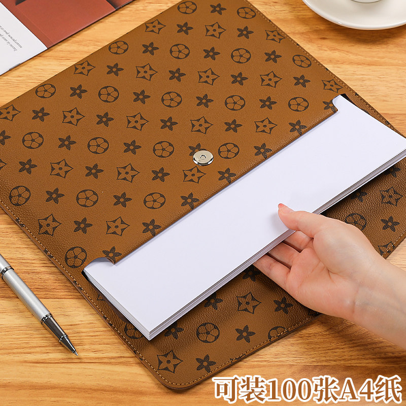 A4皮质文件袋资料档案袋高级感防水大容量按扣文件包文件夹商务办公合同票据公文袋大号手提便携高颜值加厚