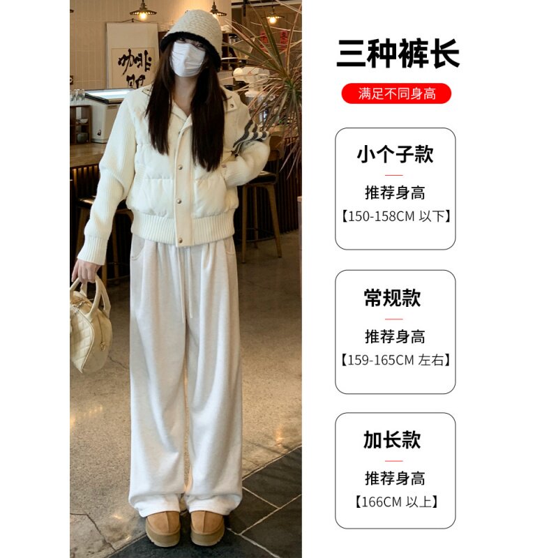 大码羊羔绒糯米裤女秋冬加绒2025年新款高腰直筒小个子灰色阔腿裤