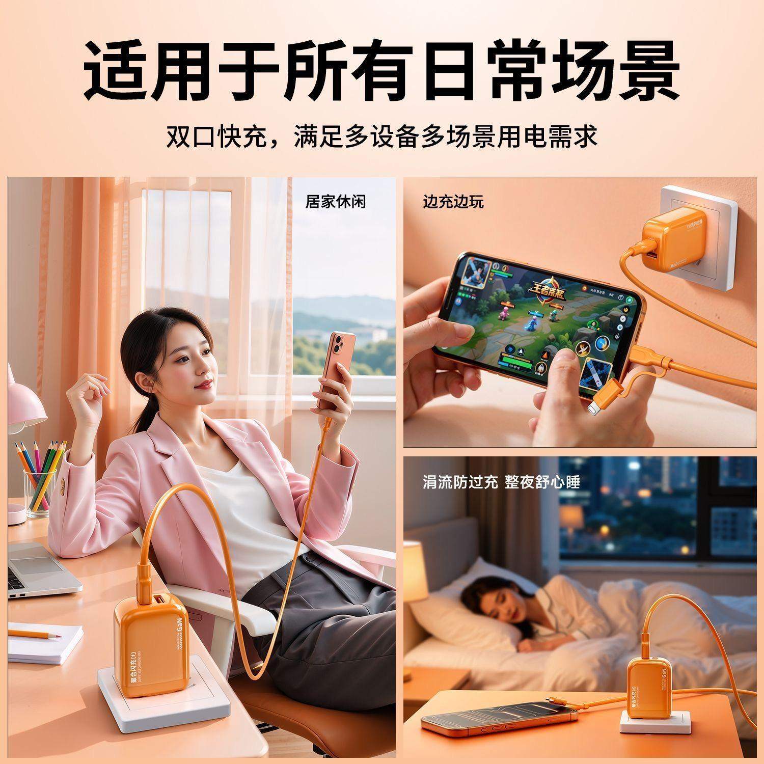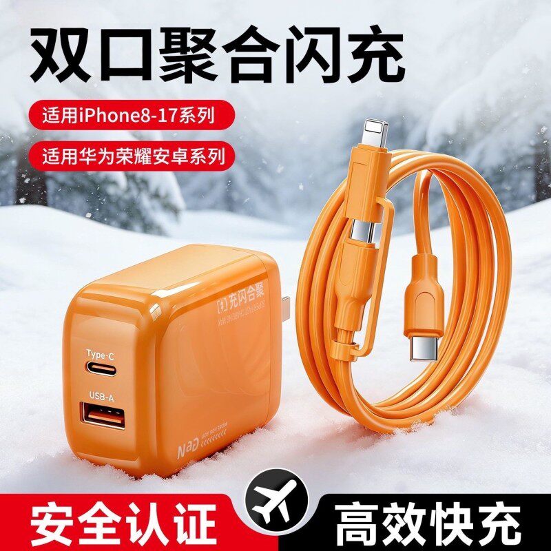 30W小团圆双口充电器快充typeC数据线适用苹果17iPhone16/15proMax14华为荣耀mate60安卓oppo手机vivo头