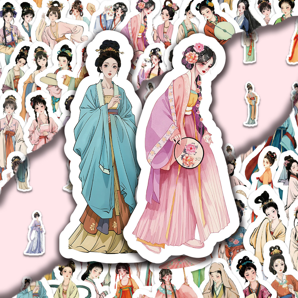 63张古风少女贴纸中国风新中式旗袍汉服美女装饰笔记本文艺防水贴