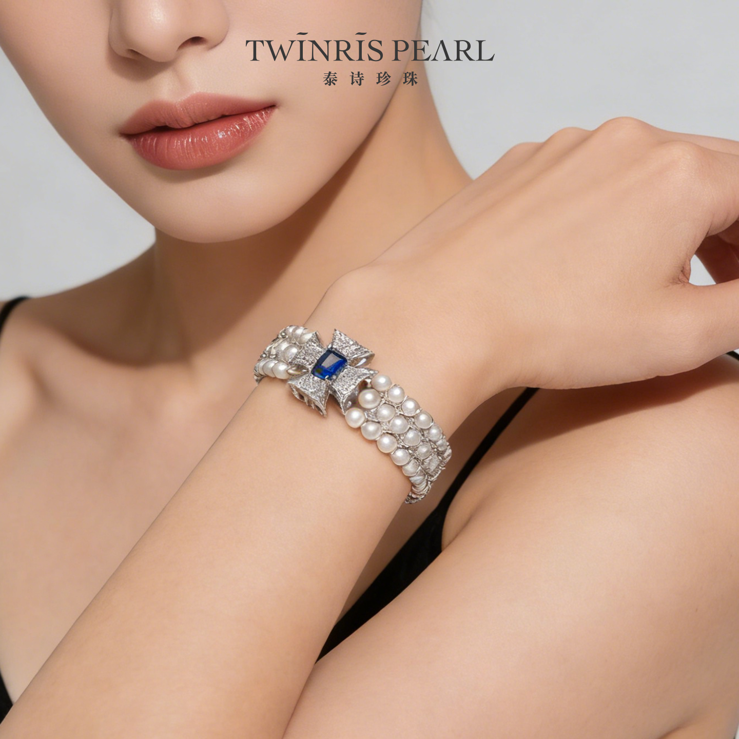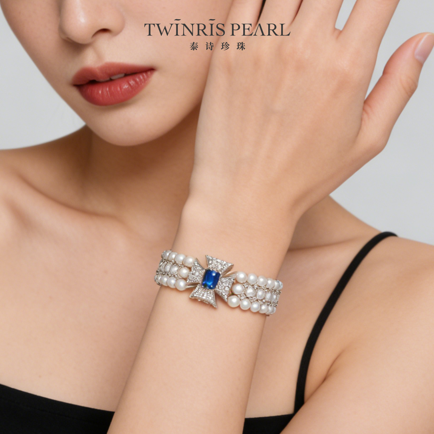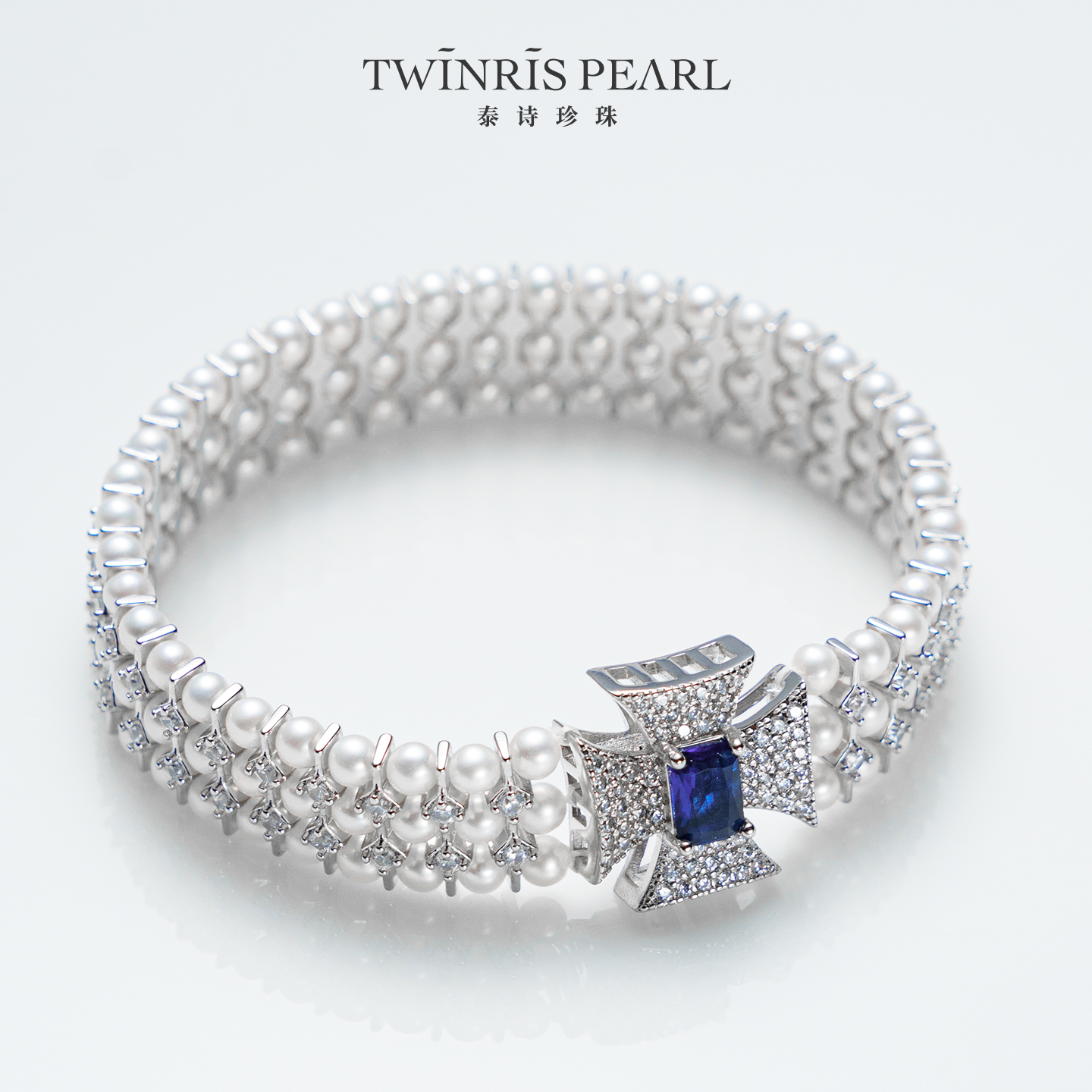 泰诗珍珠淡水三层十字花扣手链