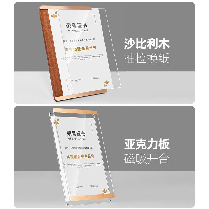 A4证书框相框摆台高端授权书框证件框奖状展示框A3营业执照框挂墙