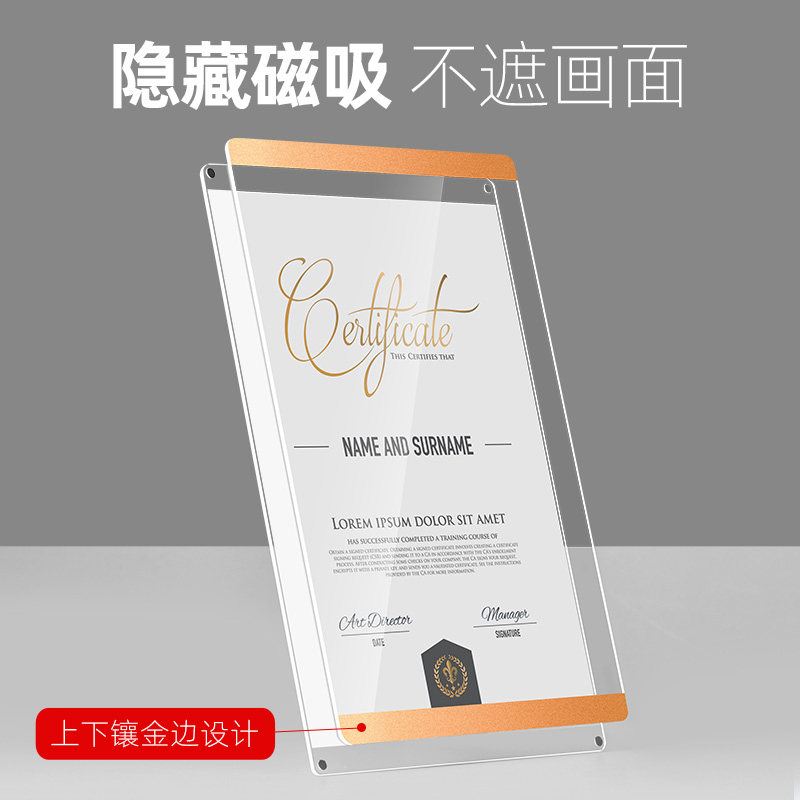 玻璃荣誉证书a4奖状结业获奖授权书高档磁吸水晶相框毕业颁奖裱框