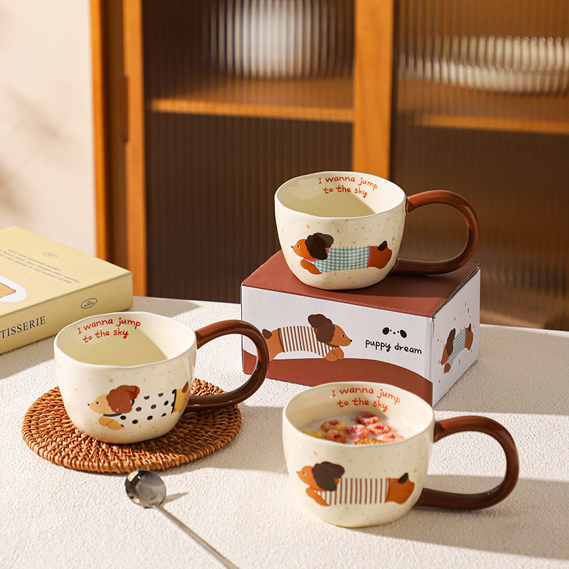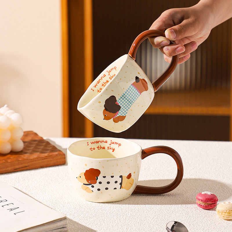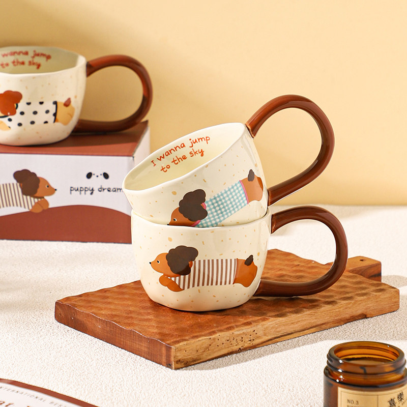 言仓线条小狗马克杯复古陶瓷水杯可爱儿童男女情侣圣诞生日礼物