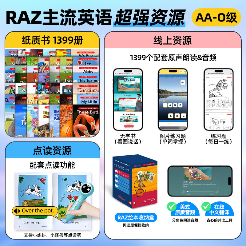 raz分级阅读绘本aa级英语a美国原版英语启蒙教材一小学三年级小蝌蚪点读笔官方旗舰店幼儿早教reading a to z