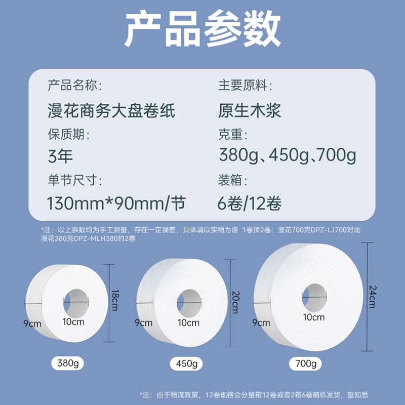 漫花商用大盘纸厕所酒店公用卫生间卷筒纸抽纸卷纸大卷纸实惠装批