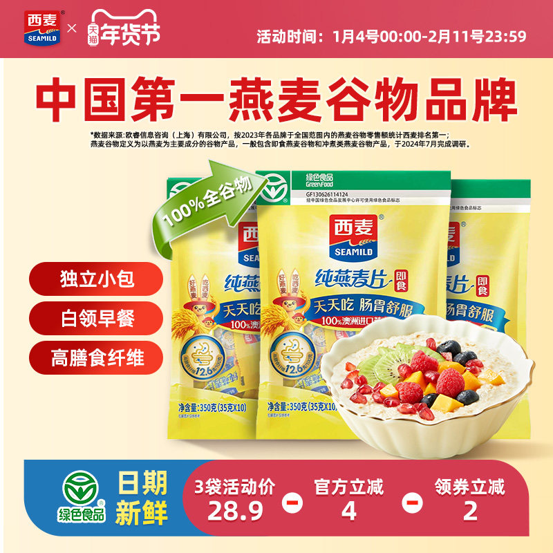 【独立小包】西麦纯燕麦片350g*3袋高蛋白质0添加蔗糖健康营养品