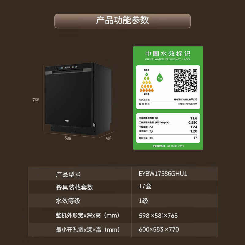 海尔洗碗机17套18/16套大容量家用消毒烘干全自动嵌入式w5000plus