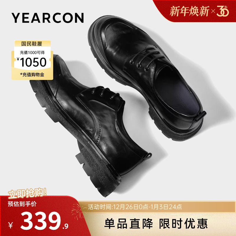 意尔康男鞋2025新款真皮大头休闲皮鞋男士年轻商务正装英伦德比鞋
