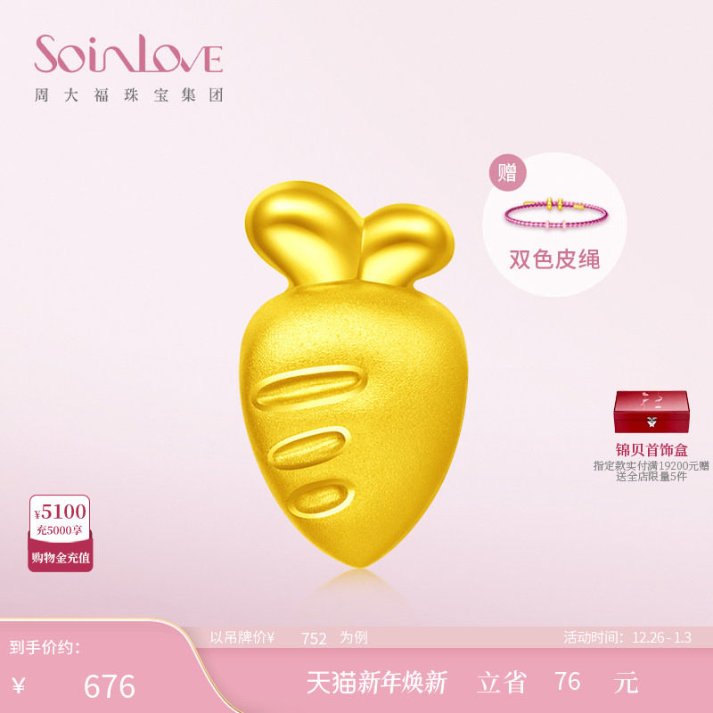 周大福SOINLOVE「下午茶」胡萝卜黄金转运珠吊坠VR868生日礼物