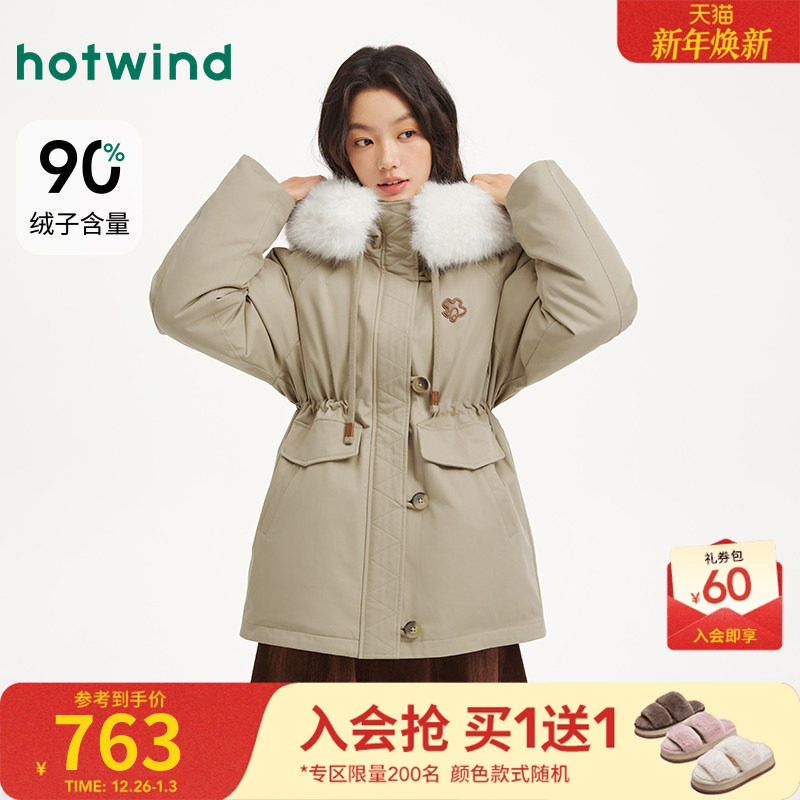 热风2025年冬季新款女士软糯毛领羽绒服高蓬松修身显瘦
