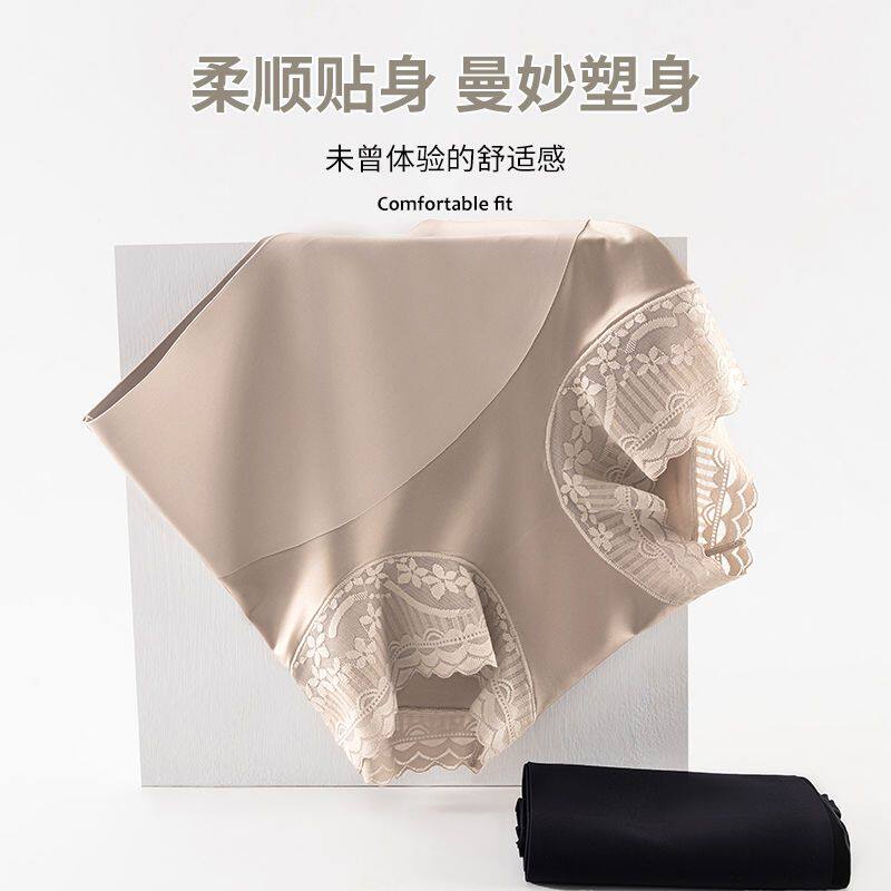 焕丽女王新中式浮雕绣花高腰桑蚕丝底裆全包臀三角女士无痕内裤女