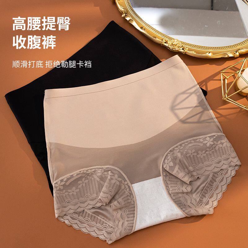 收腹裤高腰提臀内裤女士强力收小肚子产后束腰蕾丝短裤中腰塑身