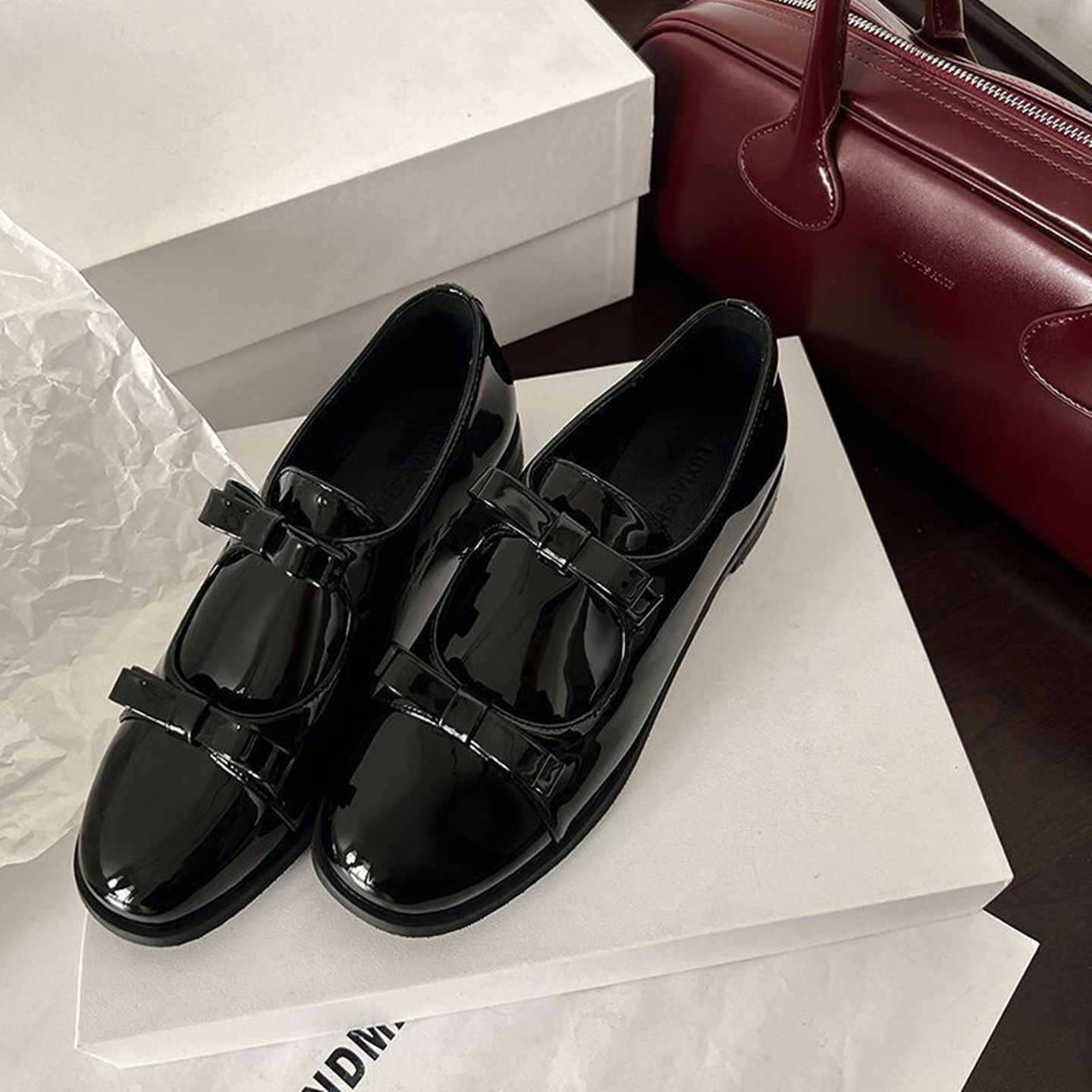 学院风漆皮复古浅口单鞋蝴蝶结早春季百搭平底乐福鞋英伦小皮鞋女