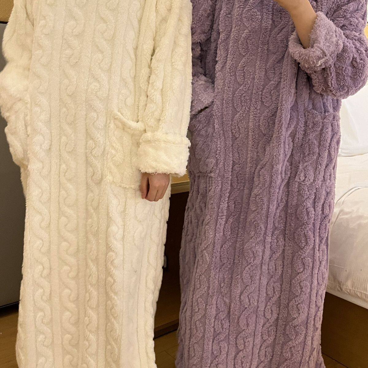 【加厚】巨保暖!冬日6色厚实提花奶油可外穿睡衣保暖居家服睡裙X