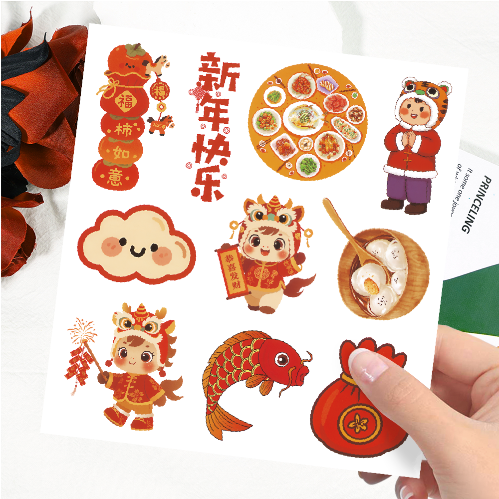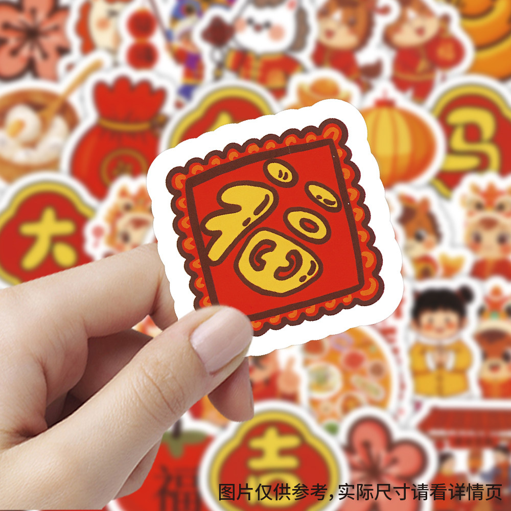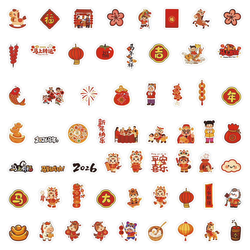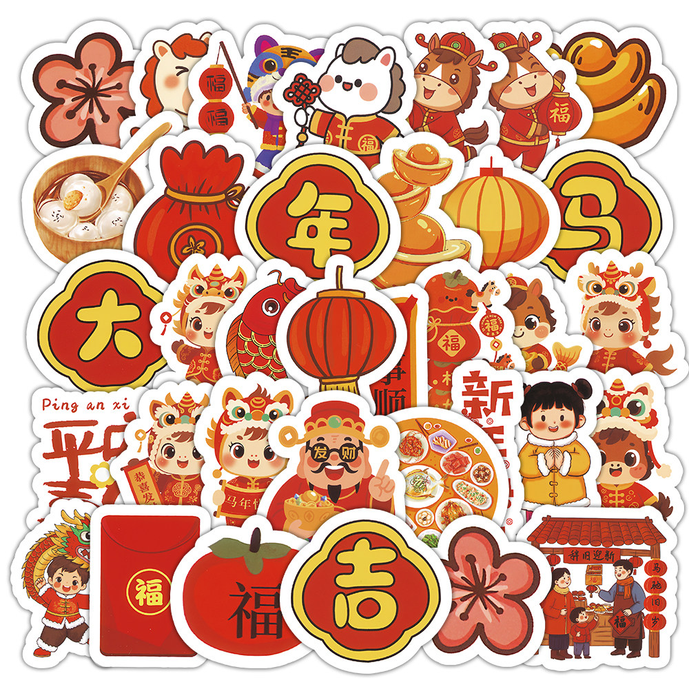 马年2026新年贴纸春节年俗手帐节日贴画图案灯笼福字金元宝平安喜乐幼儿园教师报剪报班级环创装饰不干胶贴画
