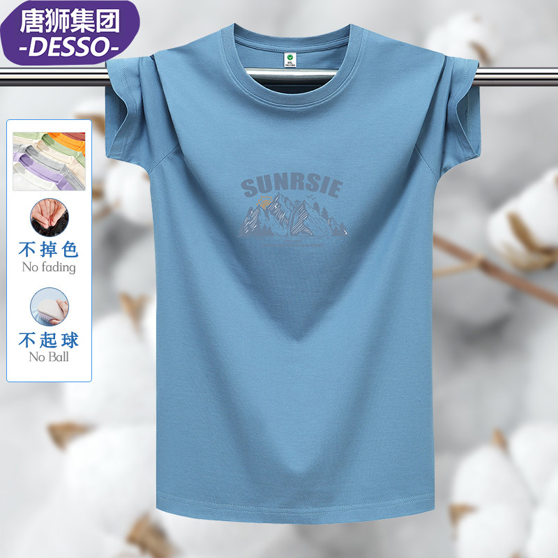 唐狮集团DESSO夏季重磅纯棉短袖t恤2023男潮流宽松大码半袖体恤衫