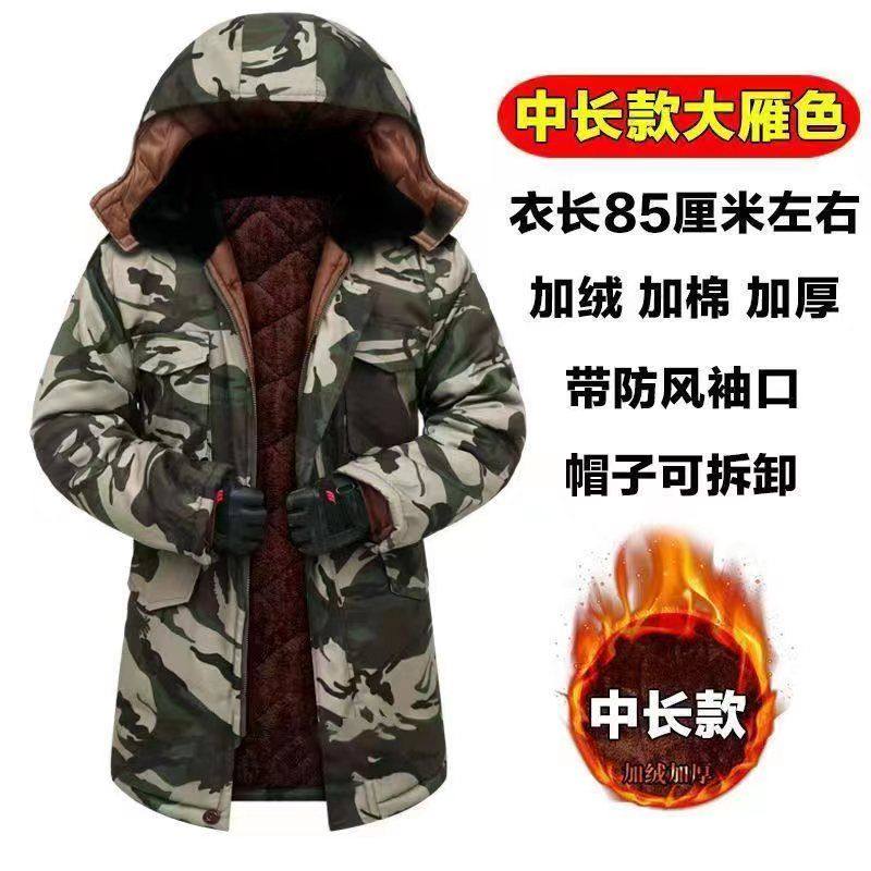 迷彩棉衣冬加绒军大衣加厚棉大衣男中长款防风迷彩棉服加肥加大码