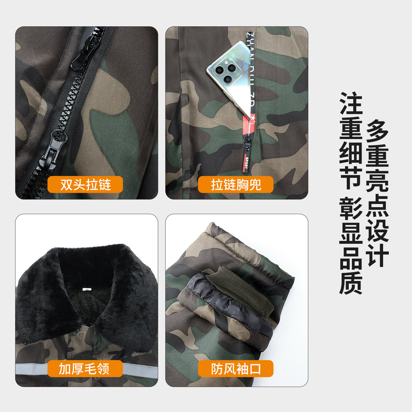 冬季加绒加厚军大衣中长款防寒服防风棉衣迷彩棉袄冷库劳保棉服