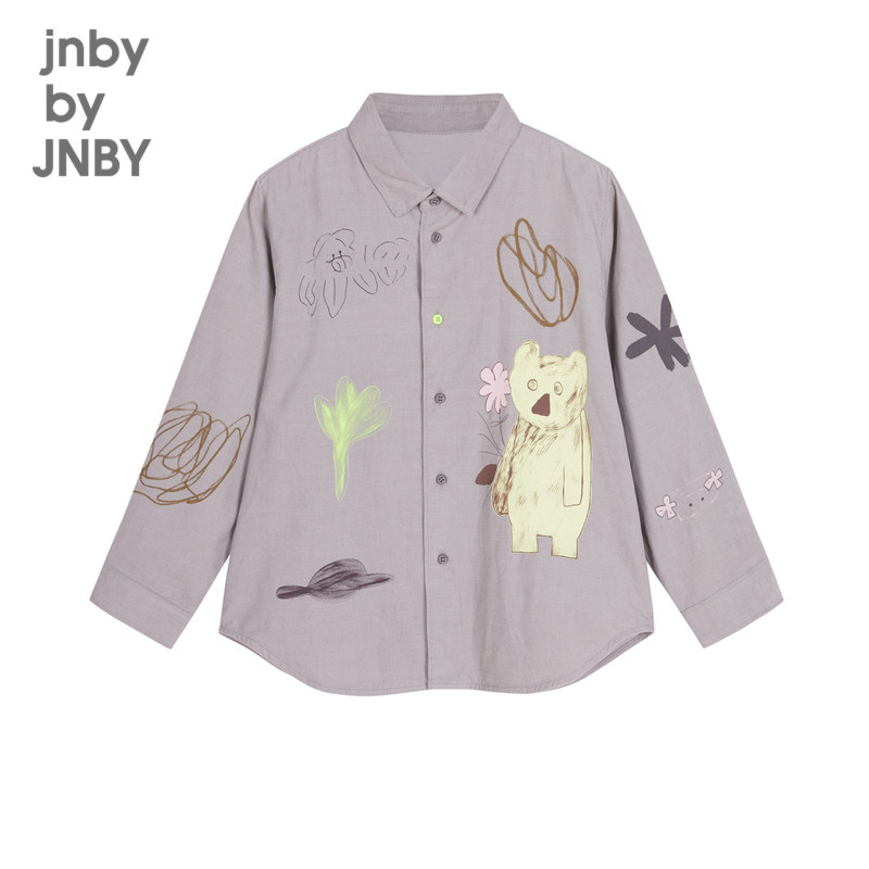 江南布衣童装棉灯芯绒长袖衬衫小熊图案秋冬男童儿童jnbybyjnby