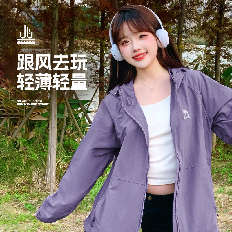 骆驼女装夹克外套2025春夏运动连帽潮流登山服休闲透气外套女