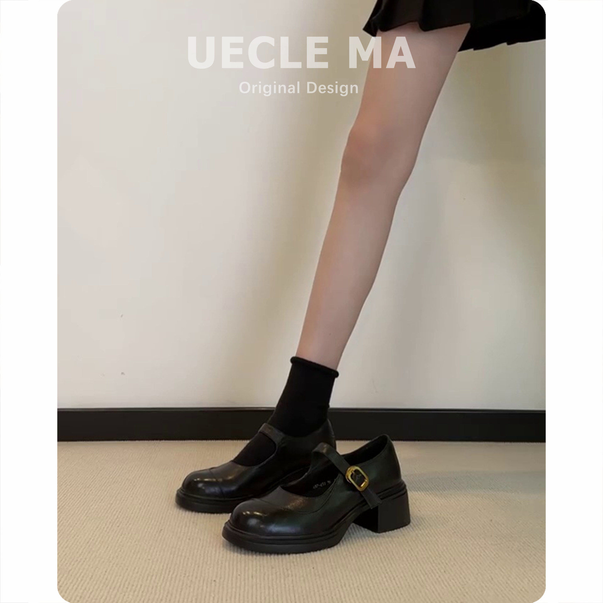 羊皮款~乖超萌玛丽珍女鞋真皮法式单鞋粗跟绝美不累脚厚底小皮鞋