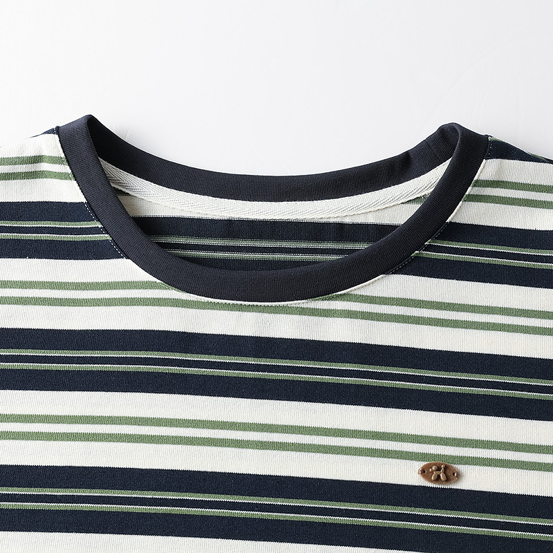 罗纹圆领 三色横条纹 小巧可爱狗狗标志装饰