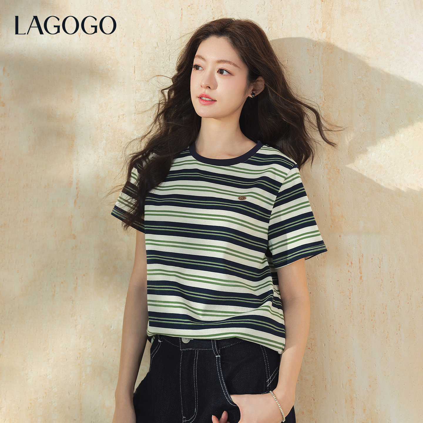 LAGOGO海盐青柠森系条纹T恤女拉谷谷2026春新款清新百搭短袖上衣