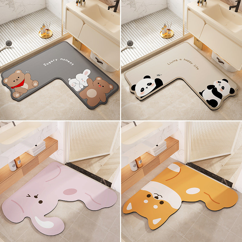 卫生间地垫洗手间门口专用脚垫浴室l型防滑地毯厕所硅藻泥吸水垫