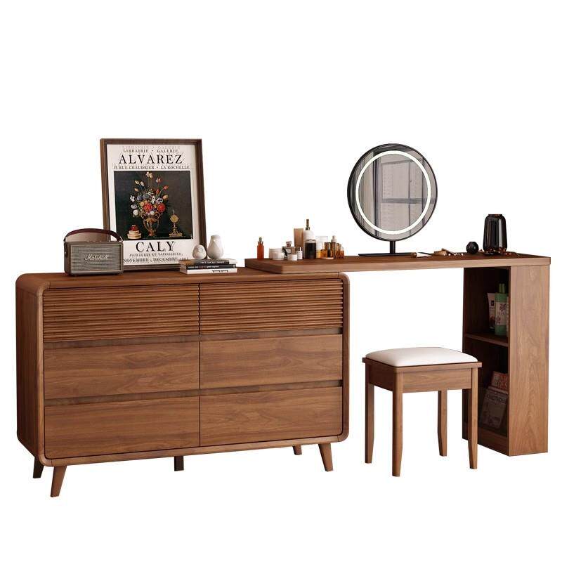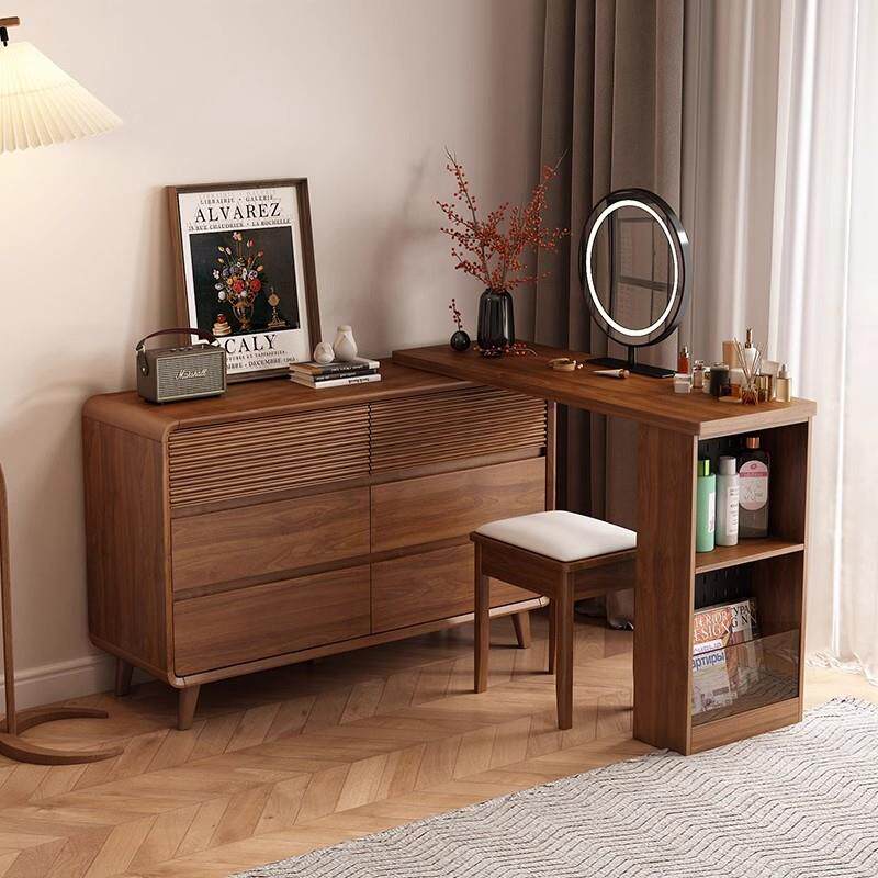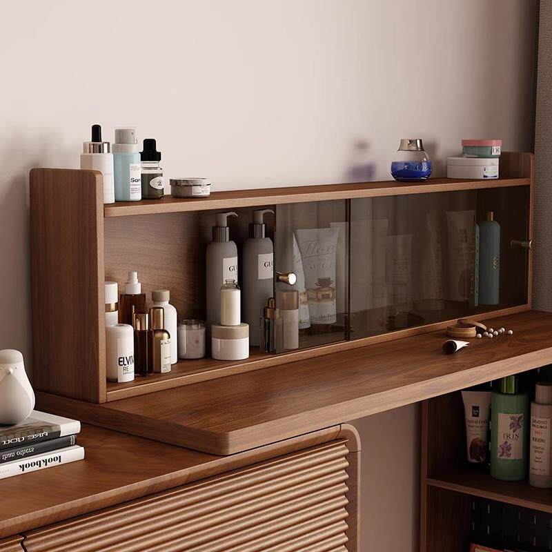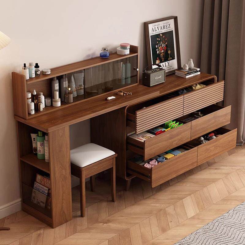 2025胡桃木色梳妆台化妆桌化妆台感卧室化妆台斗柜一体收纳置物新