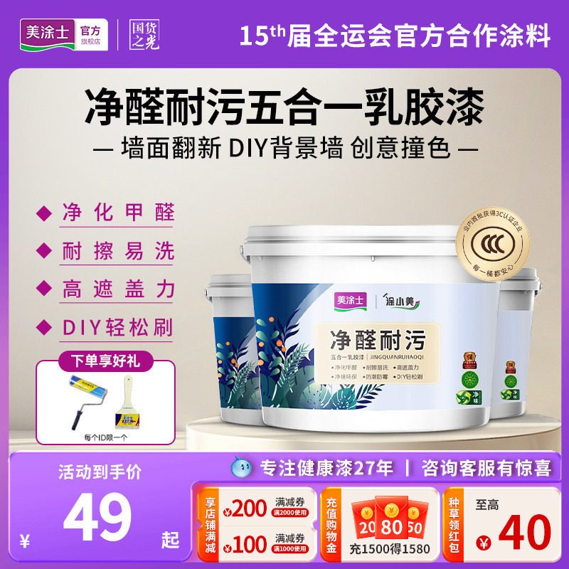 美涂士抗甲醛乳胶漆 室内家用刷墙彩色环保白色自刷内墙涂料油漆