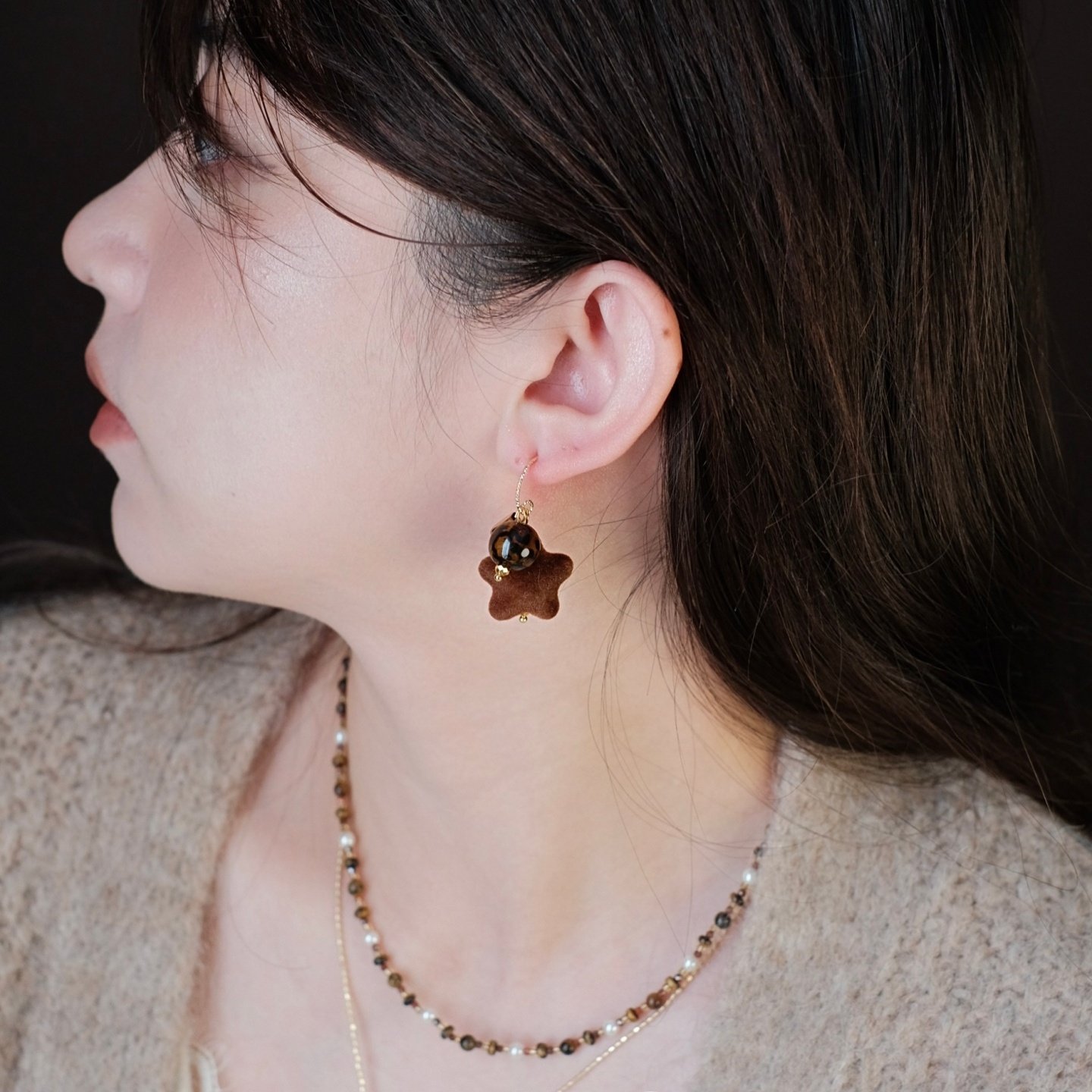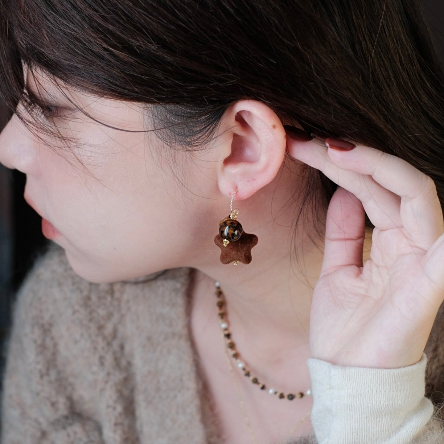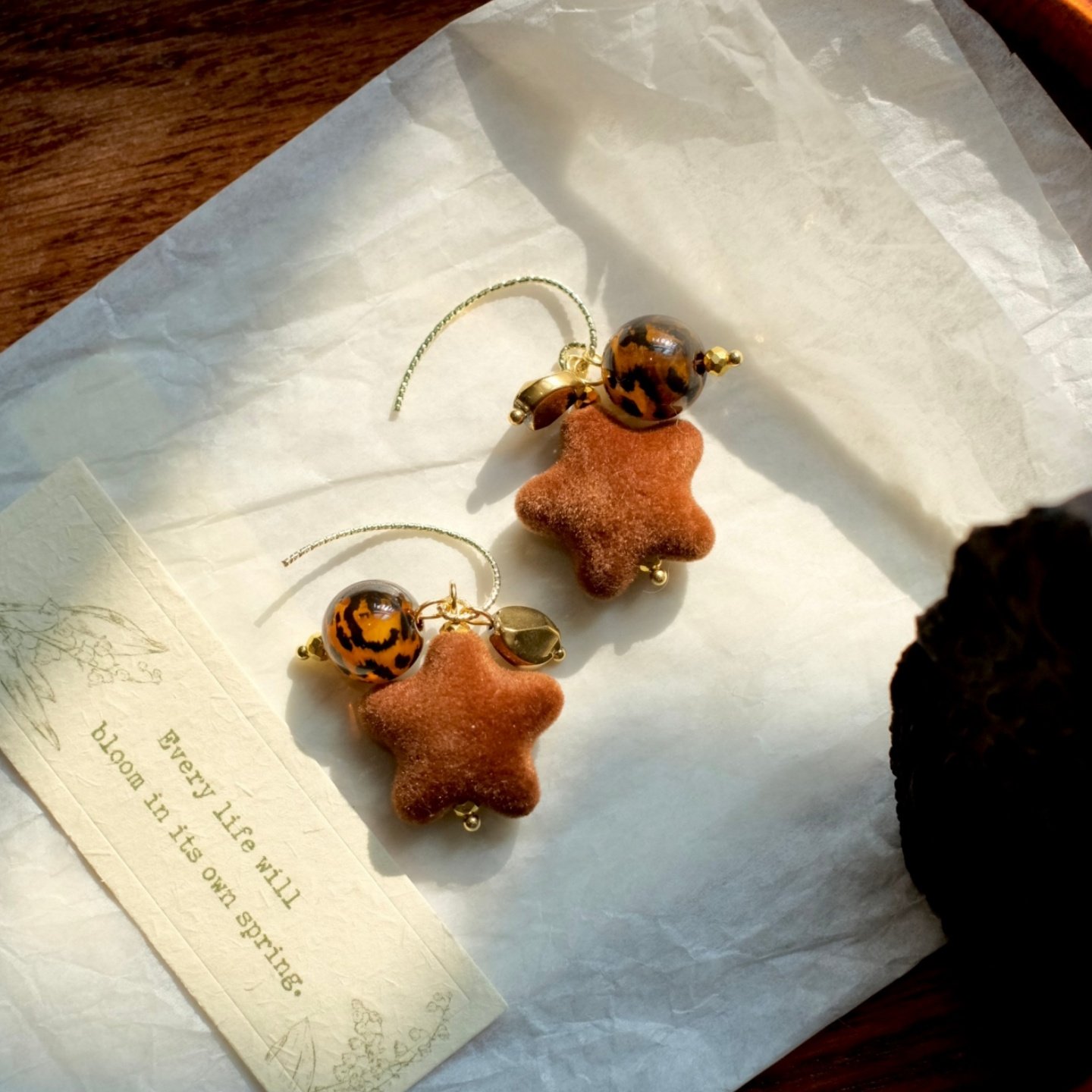 《豹纹星星》原创秋冬美拉德棕色丝绒毛绒小众可爱耳环耳饰耳坠女