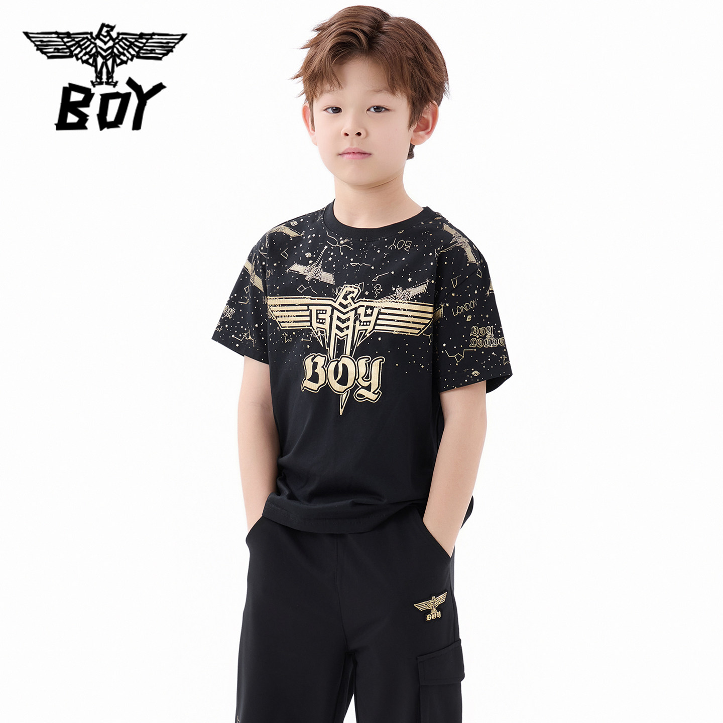 BOY童装 夏儿童潮牌短袖T恤星空满印时尚百搭圆领T恤男童女童