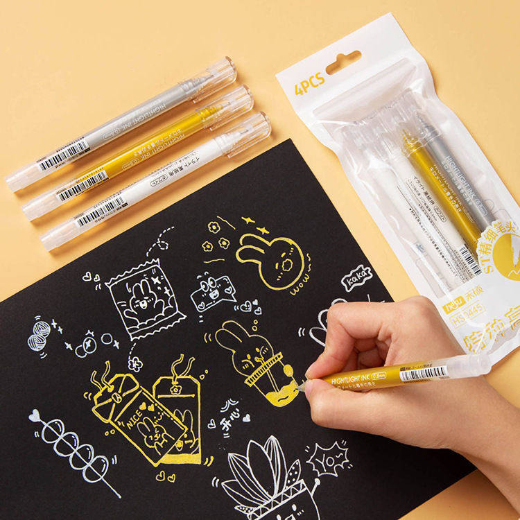 超时高光笔白色抄经书笔金色笔芯银色手账笔0.6mm黑卡专用中性笔