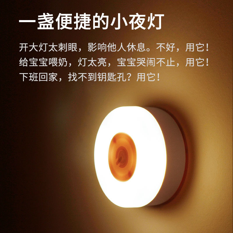 自动人体感应灯起夜卧室婴儿喂奶护眼壁侧发光过道充电小夜灯地脚