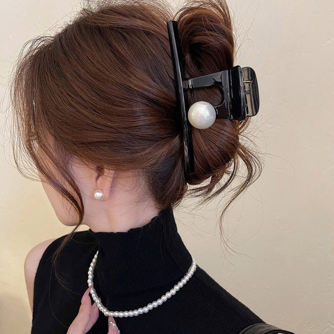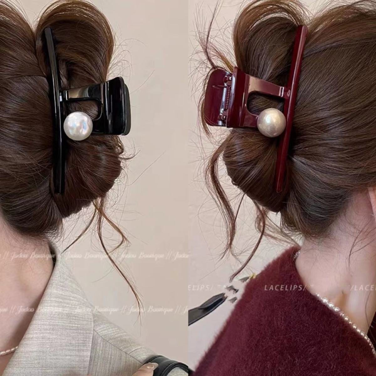 安可拉红珍珠抓夹鲨鱼夹大号发量多一字款发夹女后脑勺大抓夹