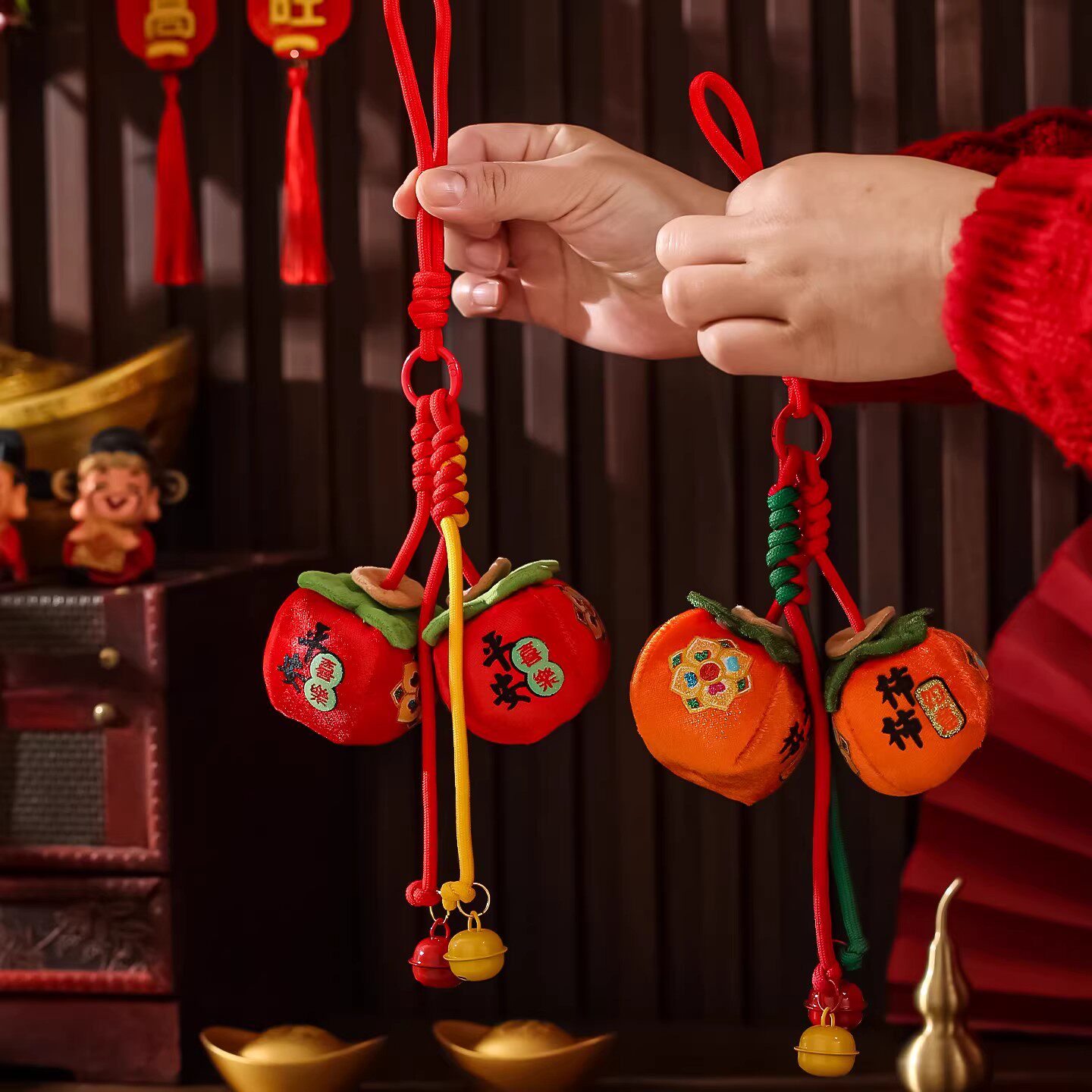 春节双柿子毛绒挂饰马年2026新年挂件车载平安喜乐车内装饰钥匙扣