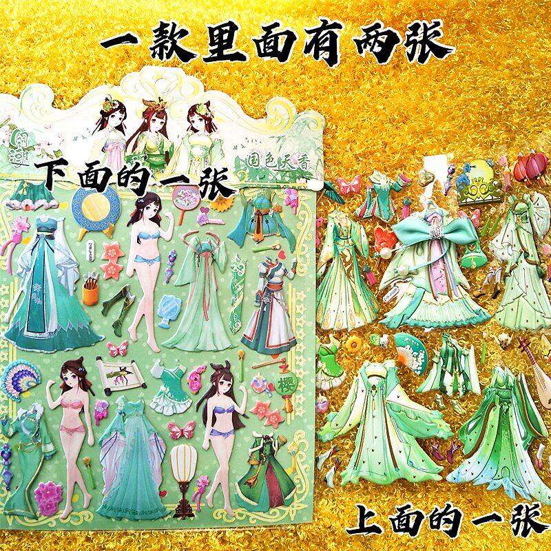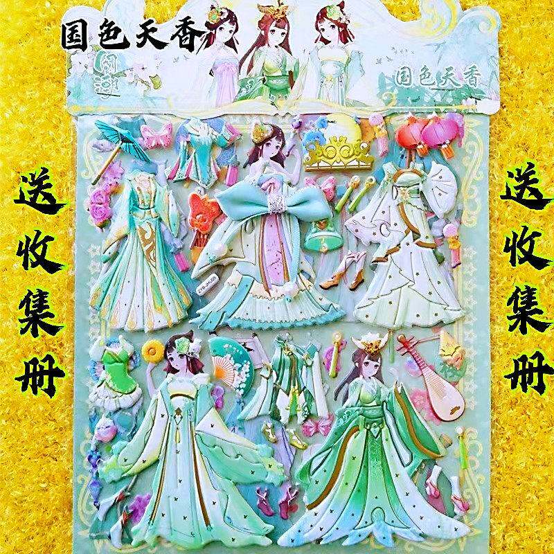 贴纸女孩儿童国潮古装公主换装贴美女粘纸汉服古风换衣服正版海绵奖励贴画