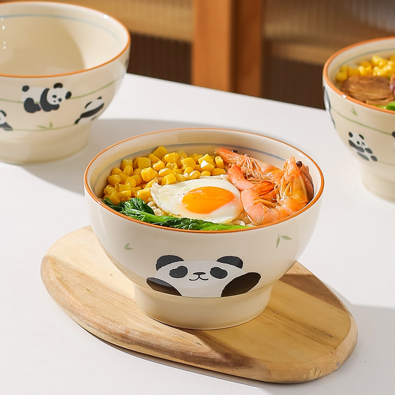 川岛屋熊猫拉面碗家用2026新款陶瓷泡面碗个人专用汤面碗大号汤碗