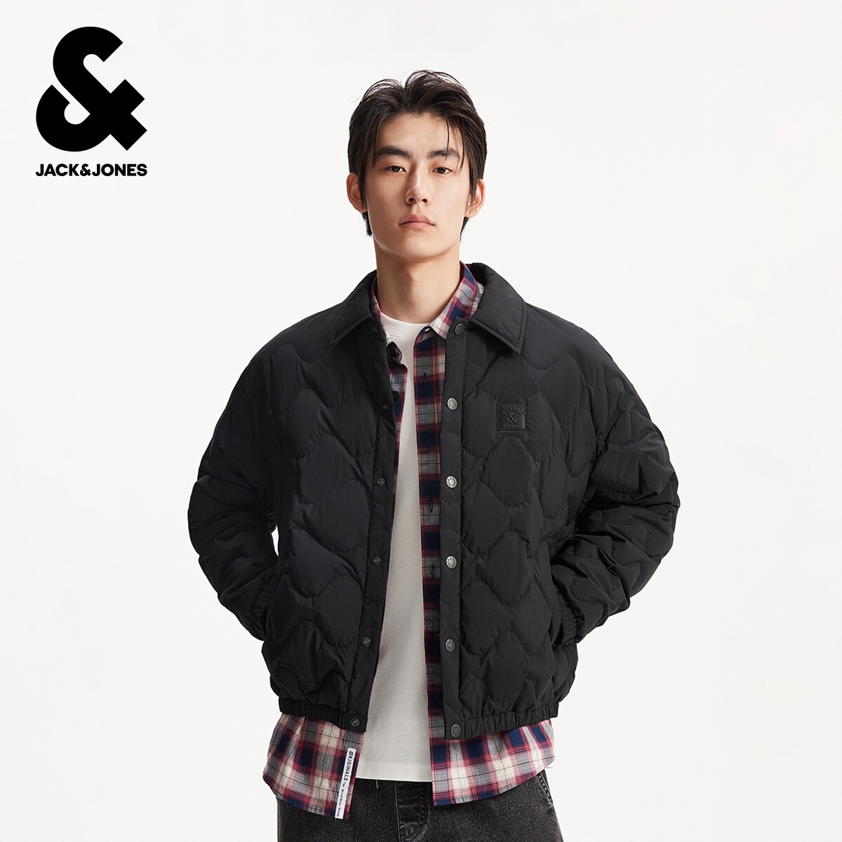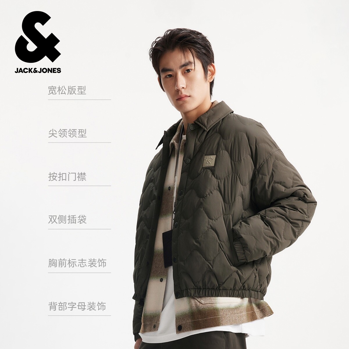 杰克琼斯秋冬季男装羽绒服外套上衣略宽松摁扣时尚百搭舒适休闲风