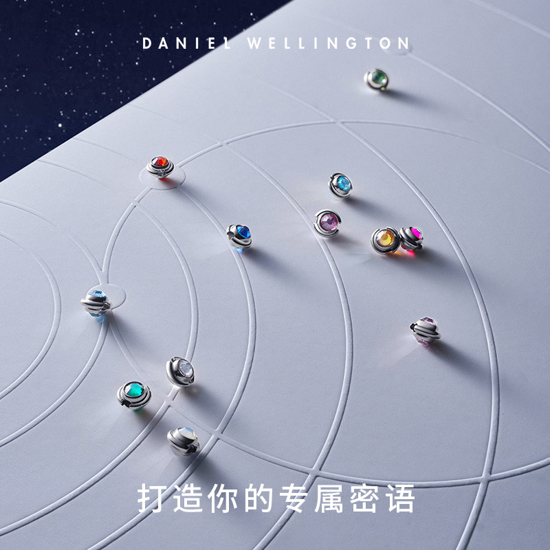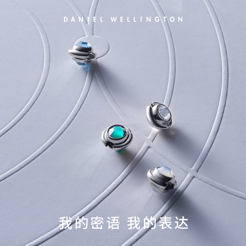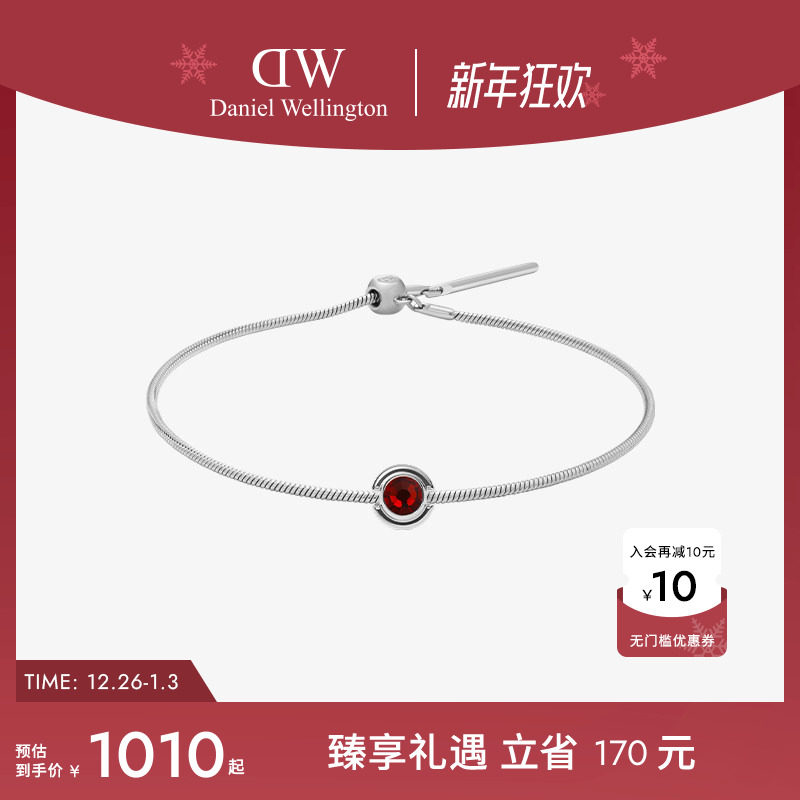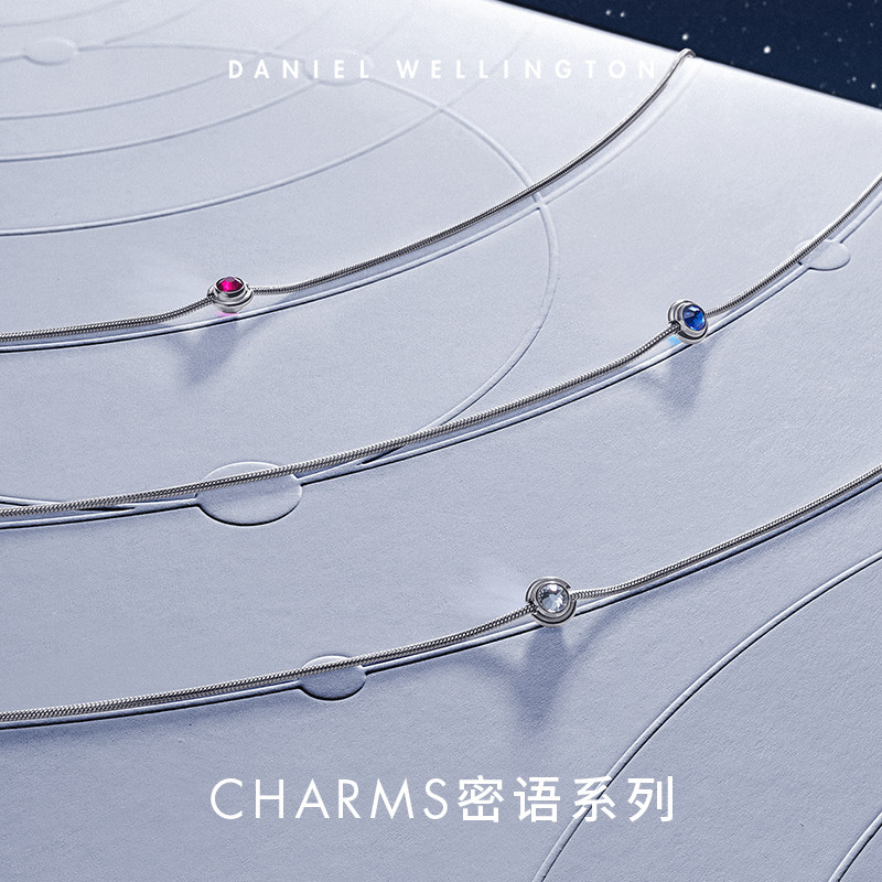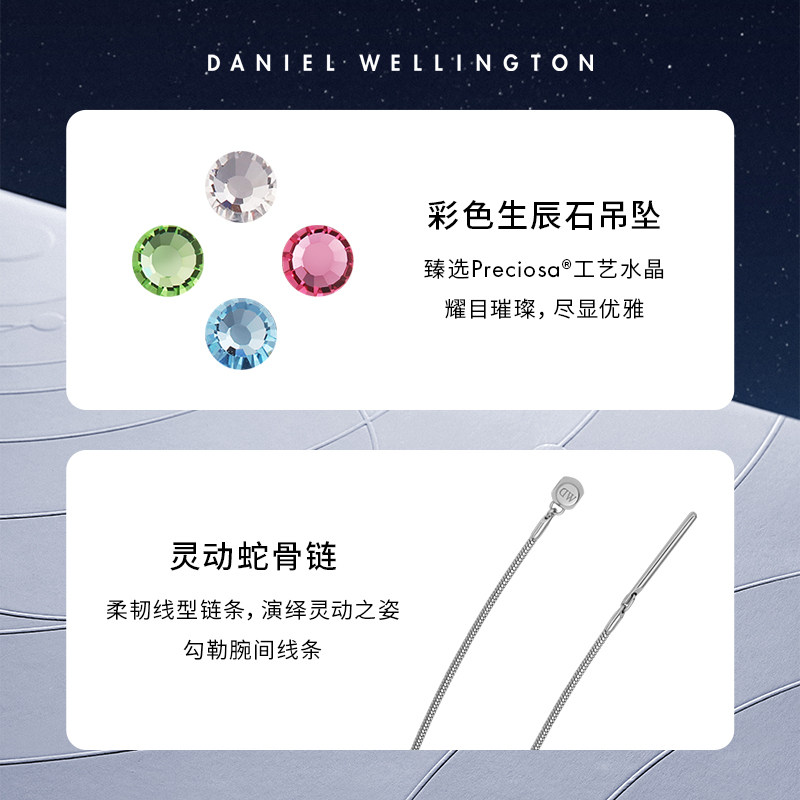 DW银手链女 CHARMS闪耀水晶镶钻锆石吊坠925银生辰石素链