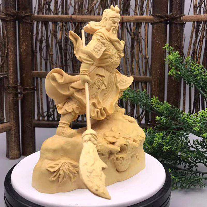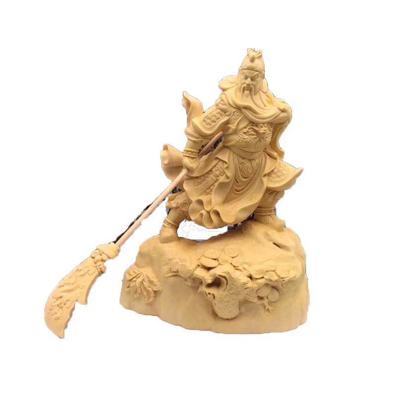 黄杨木跨步关公规格11.3*6.5*15cm 雕刻木雕摆饰摆件装饰工艺