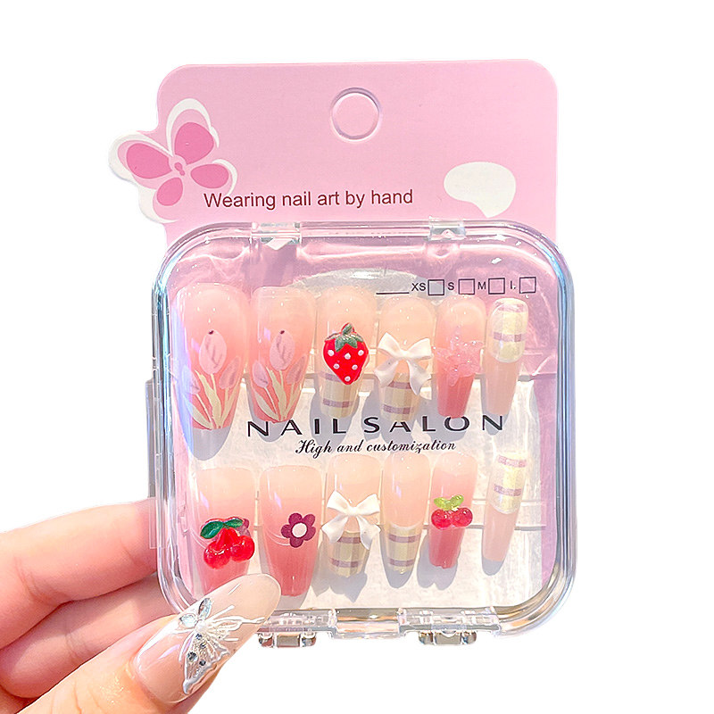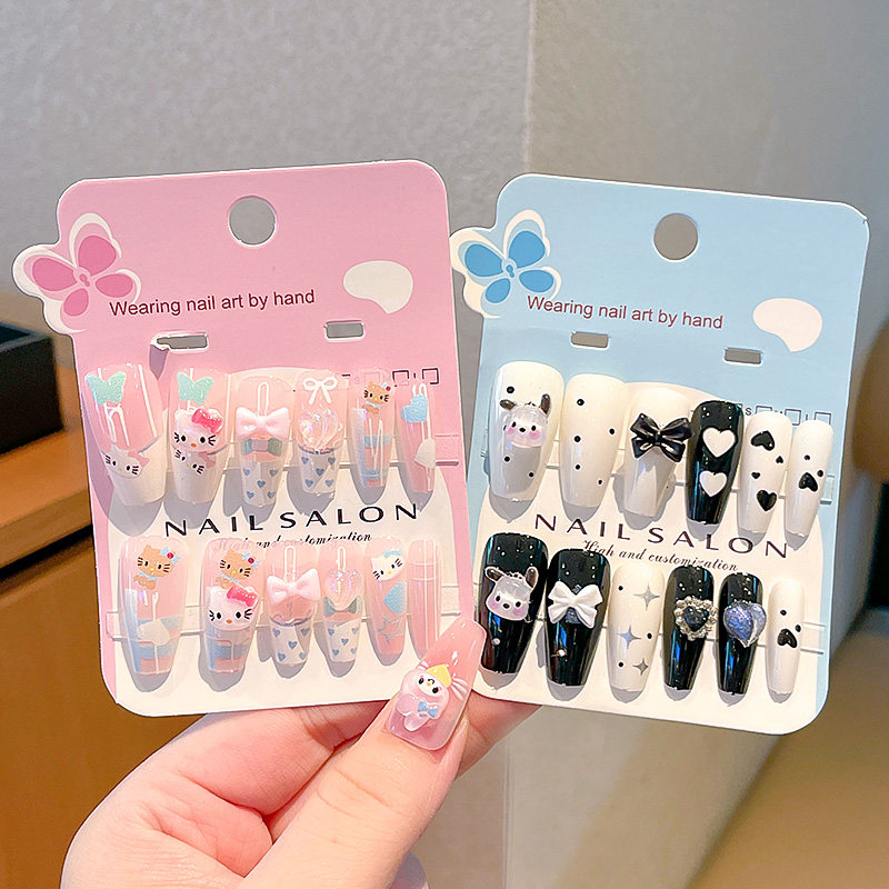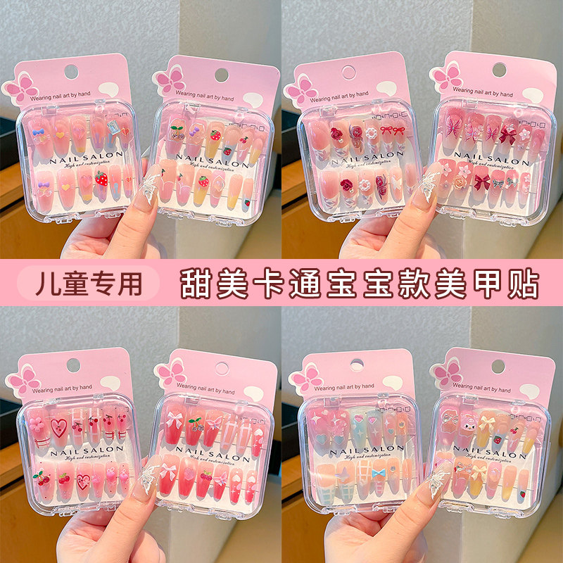 卡通儿童穿戴甲女童指甲贴6岁到8岁小学生美甲贴2025新款中长版显白12岁学生党专用指甲贴片可拆卸式自粘成品