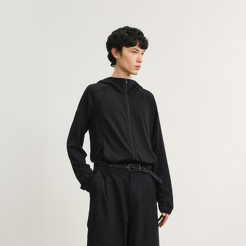 [凉感]速写男装春夏新款男士外套轻量夹克连帽黑色简约运动风外套