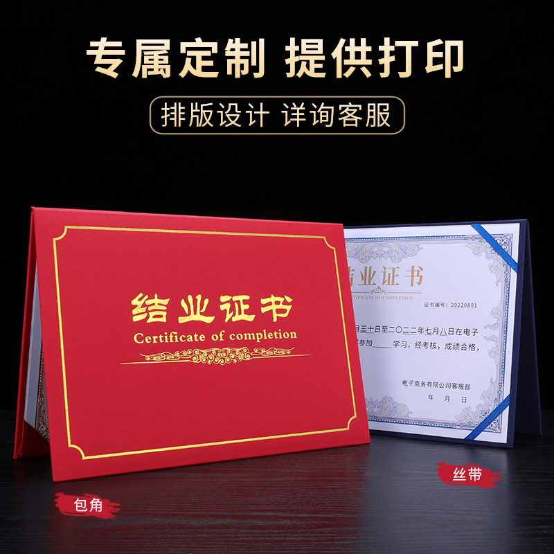 结业证书封皮定做烫金外壳党校党课团校培训证书进修岗位职业技能等级封面定制结题聘书订做蓝色荣誉证可打印