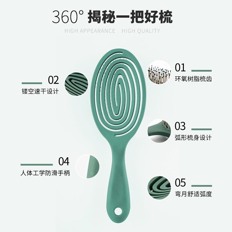 RHOS排骨梳子蓬松高颅顶气垫梳按摩梳镂空女士家用顺发梳经络卷发