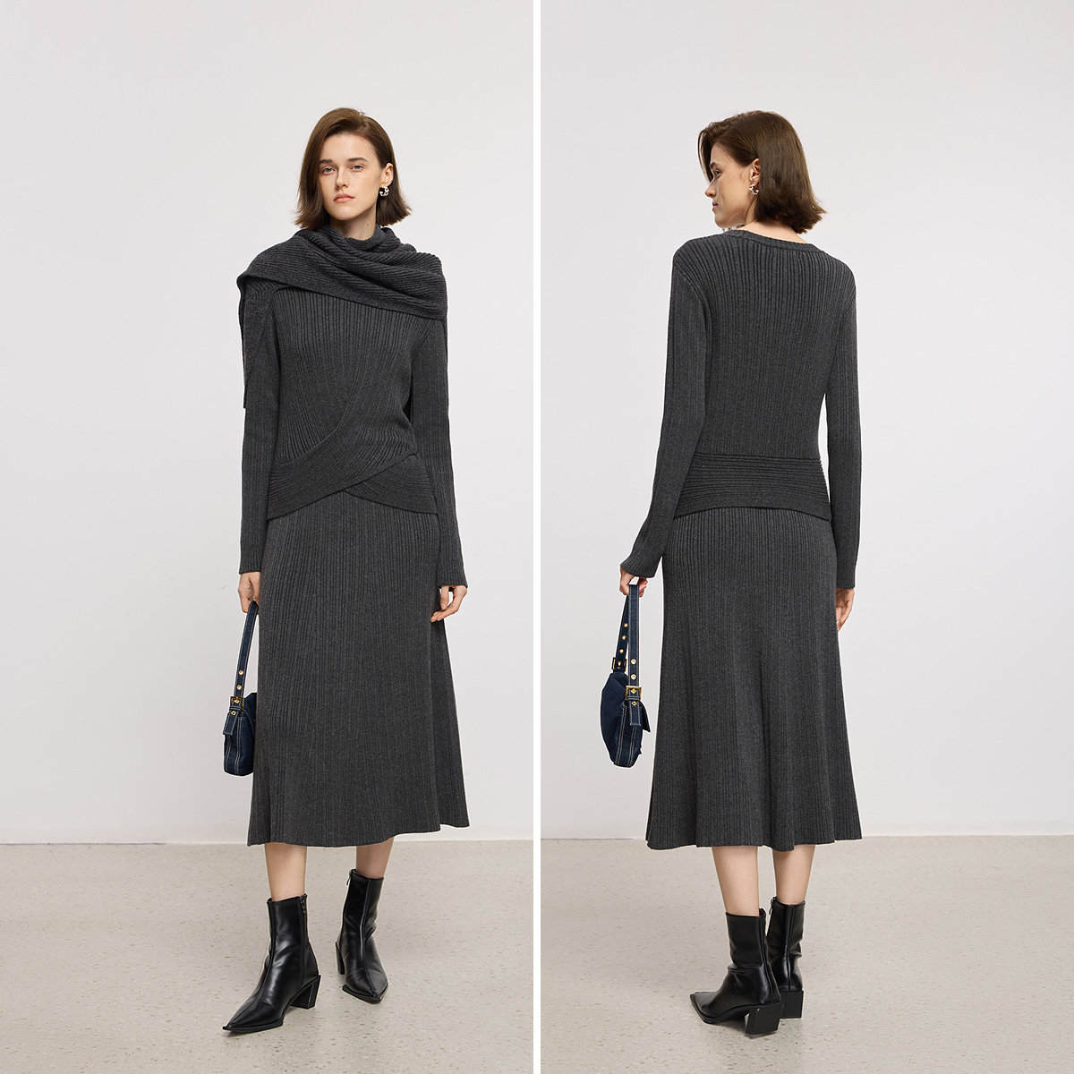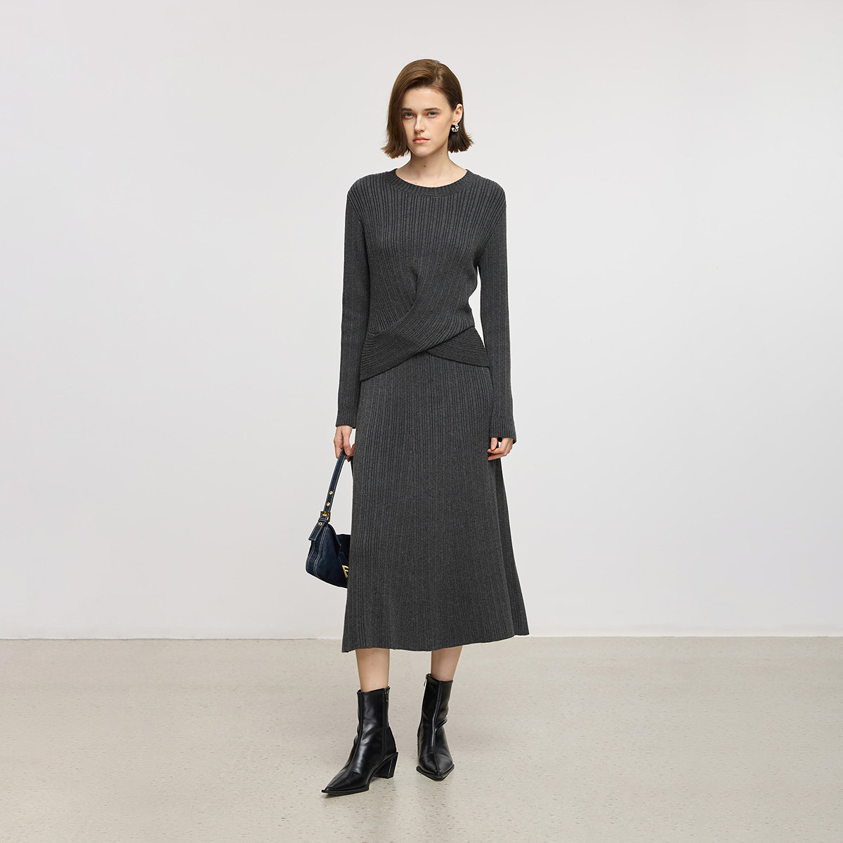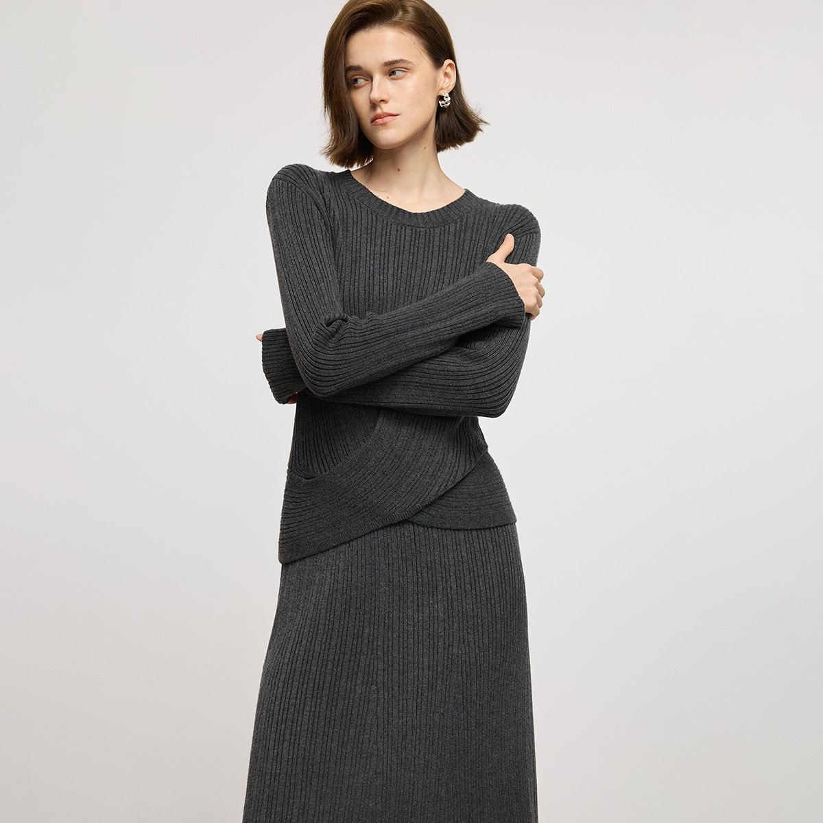 LILY2025冬新款女装含羊毛设计感收腰气质通勤套头圆领针织衫毛衣