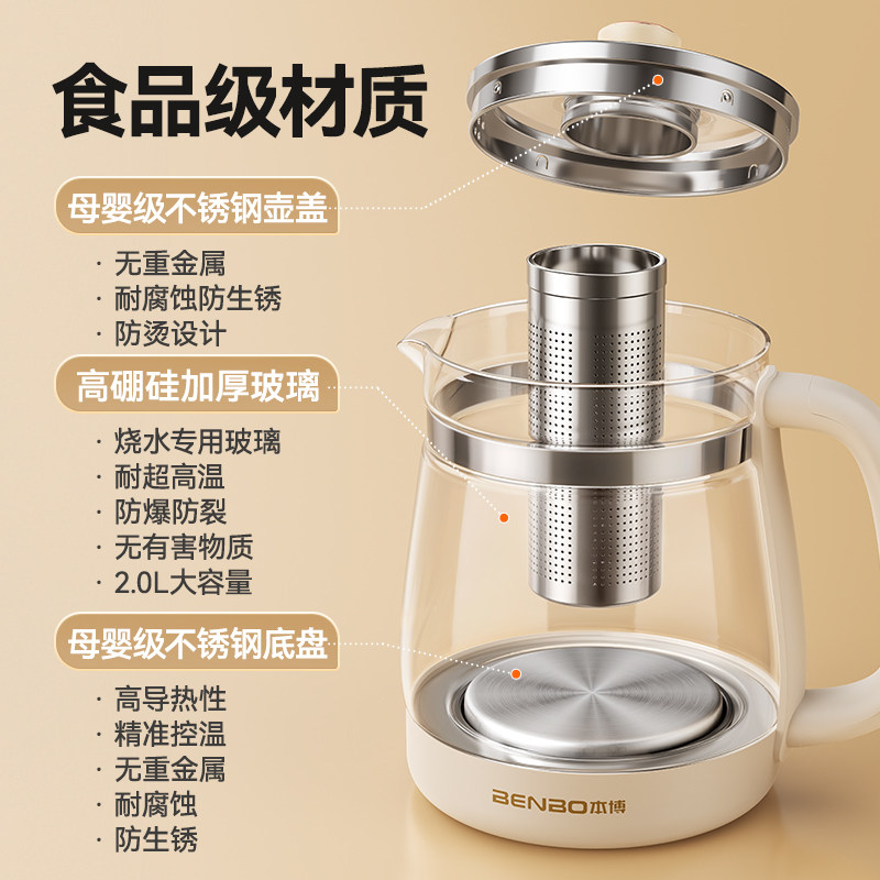 本博养生壶办公室小型家用烧水炖煮一体多功能玻璃煮茶器2026新款