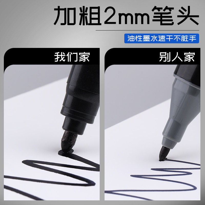 晨光双头黑色油性记号笔学生美术专用大容量勾线笔防水速干不掉色