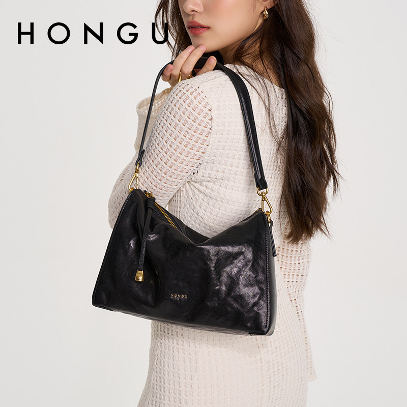 红谷包包女2026新款植鞣牛皮单肩腋下包高级感大容量斜挎包女士包